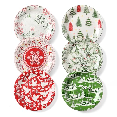 Metahom Christmas Ceramic Dessert Plates – Set of 6