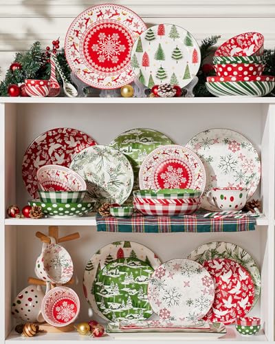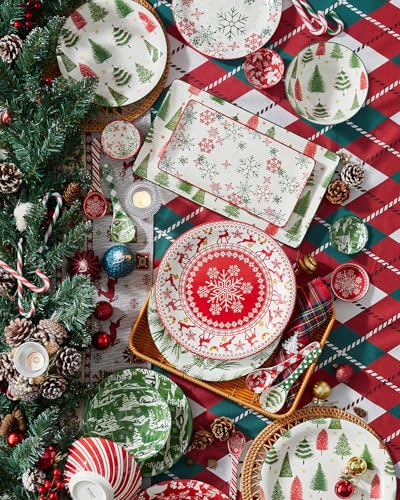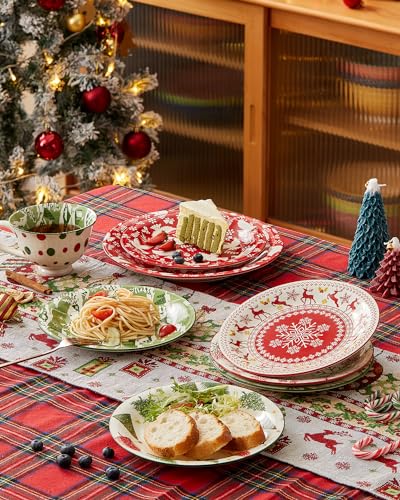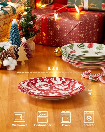 Festive 8-inch ceramic salad and dessert plates. Microwave & dishwasher safe, perfect for holiday treats, appetizers, and pasta. Set of 6.
