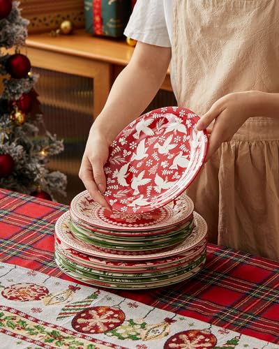 Elevate your holiday dining with Metahom Christmas Salad Plates. This set of six 8-inch ceramic plates is perfect for serving festive salads, delicious desserts, appetizers, pasta, and side dishes. Crafted for convenience, these plates are both dishwasher and microwave safe, making cleanup and reheating a breeze. Their durable design ensures long-lasting use for all your holiday gatherings and special occasions. Add a touch of seasonal charm to your table with these versatile and elegant plates.