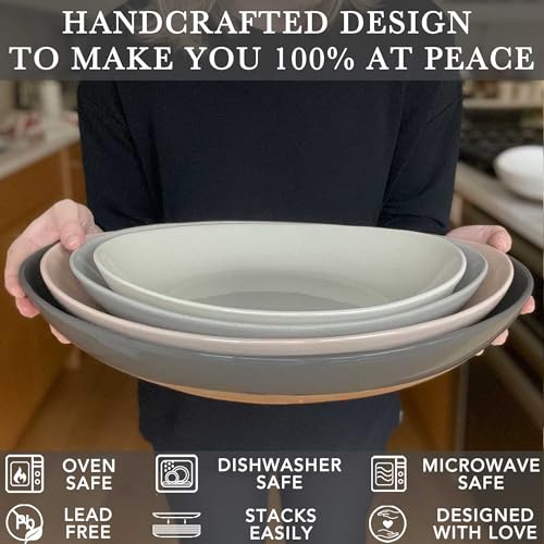 Modern neutral ceramic oval serving platters, set of 2 (55/35 oz). Oven & dishwasher safe. Ideal for dinner, fruit, salad, turkey.