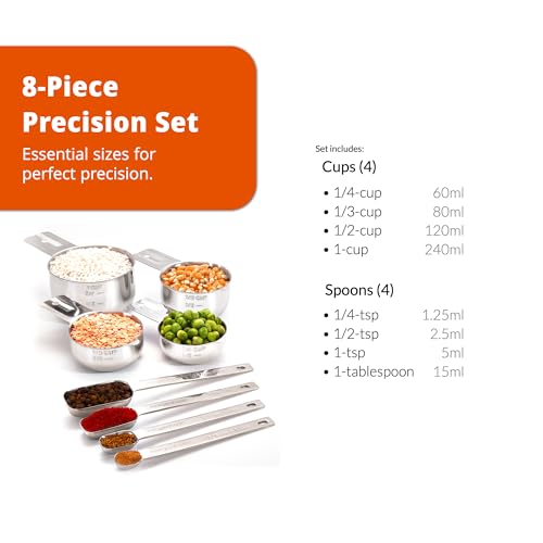 Precision cooking with Morgenhaan’s 8-piece premium 304 stainless steel measuring cups & spoons. Stackable, durable, and essential for every kitchen.