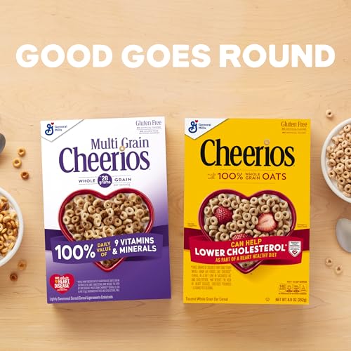 Enjoy wholesome Multi Grain Cheerios, a heart-healthy, gluten-free breakfast cereal. Family-size 18 oz box for a nutritious start to your day.
