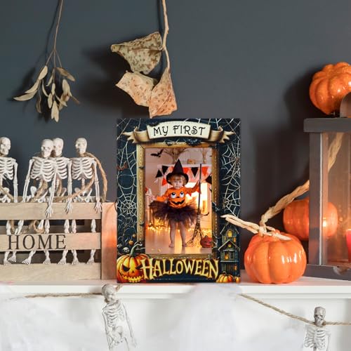 Capture precious memories of your little one’s first spooky season with the WaaHome Halloween Picture Frame. This charming 4×6 photo frame features a festive black pumpkin design, perfect for showcasing ‘My First Halloween’ moments. It’s an ideal gift for baby showers, welcoming new born baby girls or boys, and adding a delightful touch to nursery decor. The playful yet spooky aesthetic makes it a unique keepsake, allowing parents to cherish those early milestones. A wonderful way to celebrate Halloween with your newest family member and create lasting photographic memories.