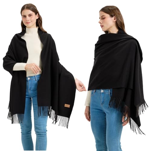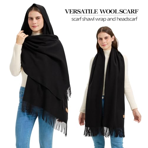Nonakgado Black Cashmere Scarf: Winter Wool Pashmina Wrap
