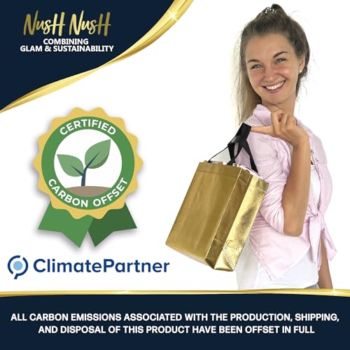 Nush Nush Gold Gift Bags – 12 Medium Reusable Bags (8x4x10)