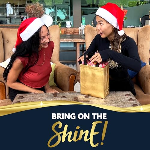 Make your gifts shine with this set of 12 Nush Nush Gold Gift Bags. These medium-sized bags (8″ W x 4″ D x 10″ H) are designed for elegance and convenience, featuring sturdy handles and a shimmering gold finish. Ideal for a variety of occasions including Christmas, bridesmaids’ gifts, bachelorette parties, birthdays, or as stylish goodie and party favor bags. Their reusable nature makes them an eco-friendly choice for any event.