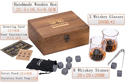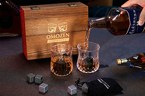 OMOZEN Whiskey Bar Set with Stones & Glasses – Gift for Men
