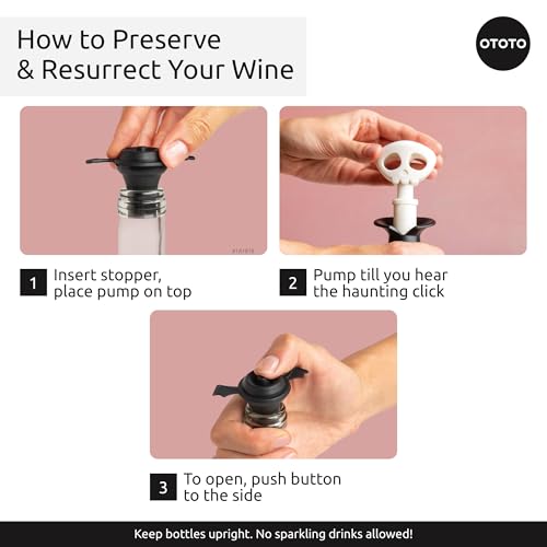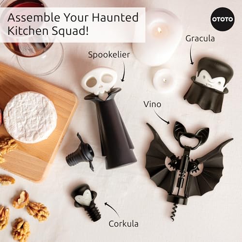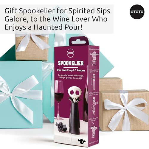 Keep your wine fresh with the OTOTO Spookelier Wine Saver Pump and its trio of spooky skull wine stoppers. This vacuum wine stopper system removes air from opened wine bottles, preserving flavor and extending freshness. Combining practical functionality with unique goth accessories, these skull-themed stoppers add a fun, macabre touch to any kitchen or bar. They are perfect for Halloween entertaining, gifting to wine lovers, or anyone who enjoys distinctive and cool kitchen gadgets.