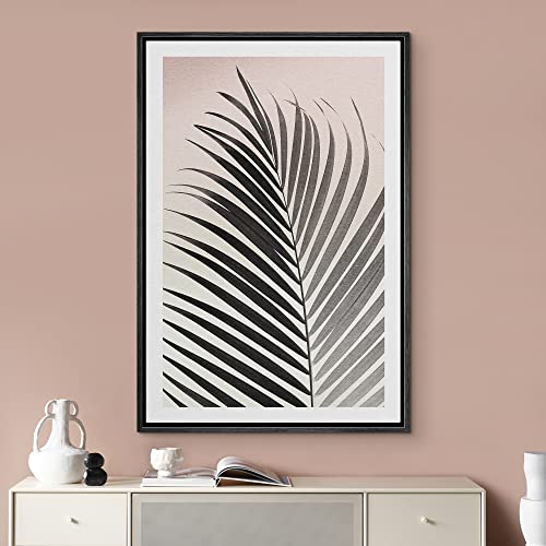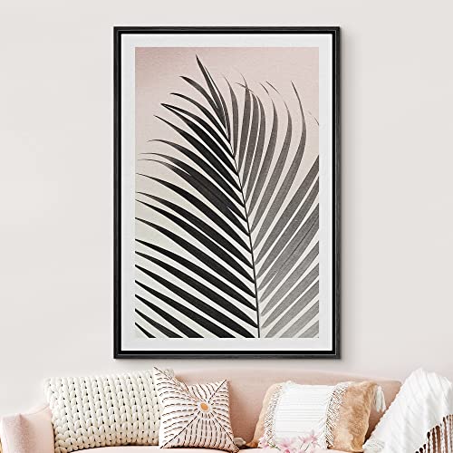 Modern 24″x36″ framed canvas art with pastel duotone jungle island palm leaf design. Perfect for living rooms, bedrooms & offices. SEO-optimized decor.