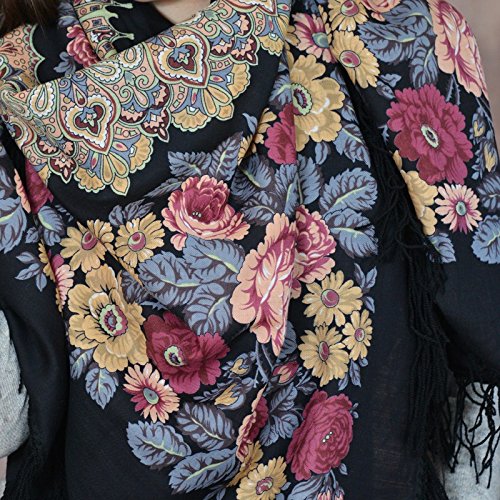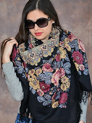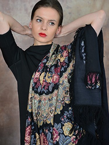 Pavlovo Posad 100% Wool Shawl: Fringe Wrap for Women (Prayer Black)