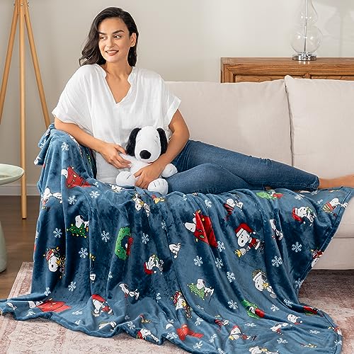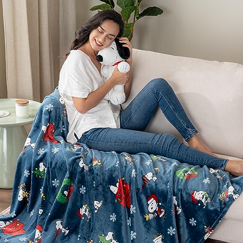 Official Peanuts® Snoopy Christmas VelvetLoft® plush blanket by Berkshire Blanket. Heavyweight, cute character design, 60″x70″ navy.