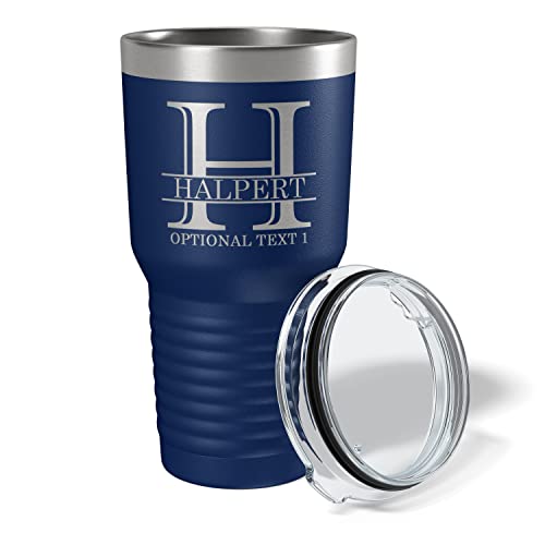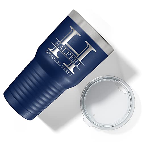 Customizable 30oz insulated stainless steel tumbler with lid. Choose from 17 colors, personalize with etched name or monogram. Perfect gift.
