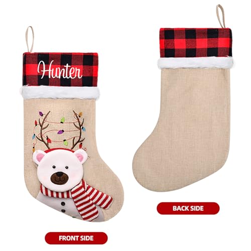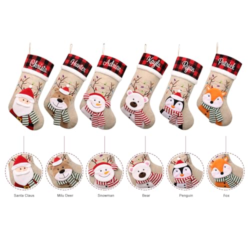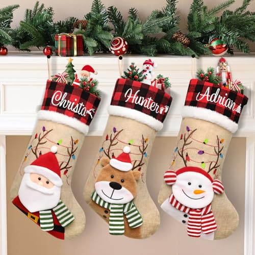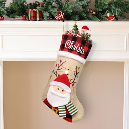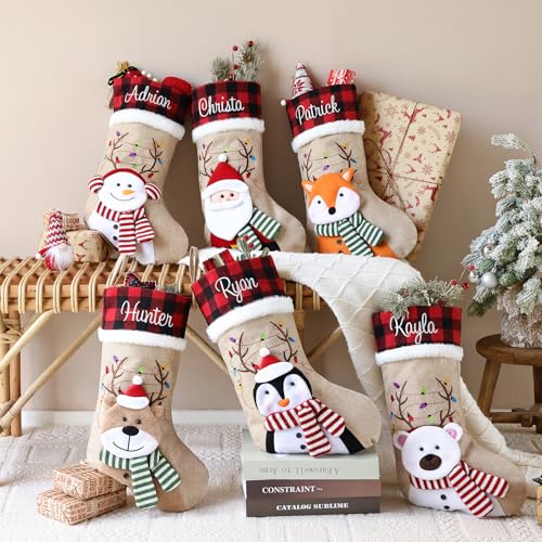 Elevate your holiday decor with ELEGANTPARK Personalized Christmas Stockings. Crafted from durable burlap, these large stockings feature a stylish plaid cuff and can be custom-embroidered with names, making each one truly unique. The charming 3D designs, available in 6 cute styles, add a whimsical touch to your fireplace. Perfect for creating lasting family memories, these custom Xmas stockings are ideal for hanging by the chimney with care, ready to be filled with festive treats. A thoughtful and beautiful addition to any home’s Christmas celebrations, designed for families and kids to enjoy year after year, enhancing your festive spirit with a personalized touch.