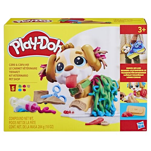 Creative Play-Doh vet playset for kids 3+. Includes toy dog, 10 tools, storage & 5 non-toxic compounds. Foster imagination & pet care skills.