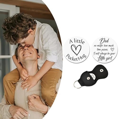 Sentimental “Pocket Hug” token keychain gift for Dad from daughter. Perfect for Father’s Day, Birthday, Christmas. Includes PU leather keychain for men.