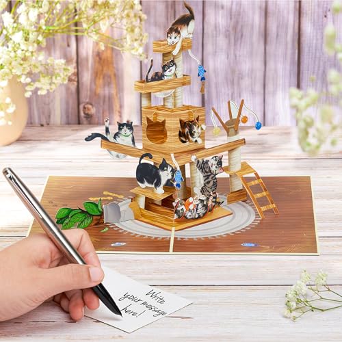 POPWOW 3D Cat Tree Pop Up Card – Funny Cat Lover Greeting Gift