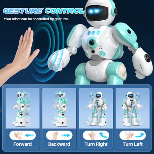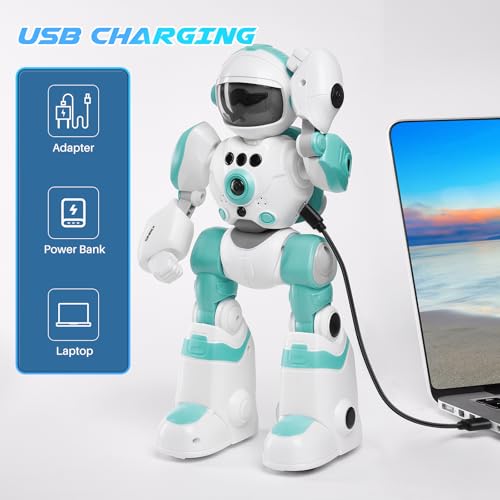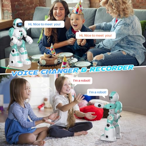 Interactive programmable RC robot toy for toddlers with recorded voice, music, dance, and gesture control. Ideal gift for boys & girls.