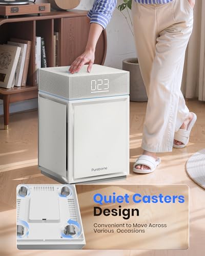 Pureborne Air Purifier for large rooms up to 3600 sq ft. Features PM 2.5 display, air quality sensor, True HEPA filter for fur, odor, and smoke.
