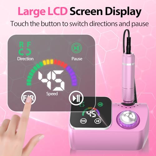 Professional electric nail drill with 45,000 RPM. Perfect for shaping, removing, and polishing acrylic and gel nails. Low noise, LED display.