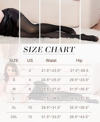 QooNoo 220g Fleece Lined Tights for women. Opaque black thermal pantyhose with stirrup design. Sheer-look warm leggings, perfect for winter under dresses.