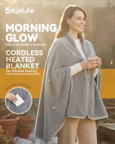 Stay warm anywhere with RayoLife’s portable, battery-operated heated throw. Features soft faux rabbit fur, far infrared heat, and a rechargeable pack for home, office, travel.