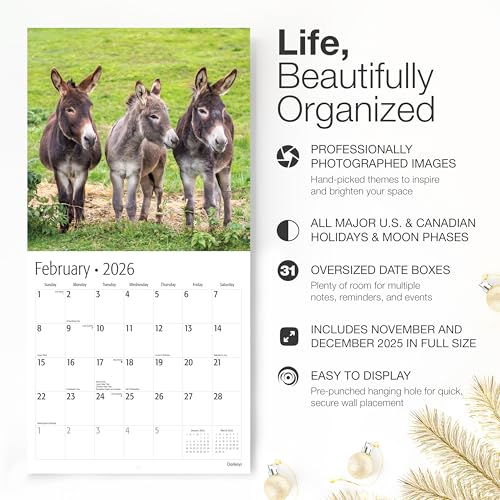 Discover the charm of donkeys with this 2026 wall calendar. 12 months, thick sturdy paper, and giftable. Perfect for animal lovers and farm enthusiasts.
