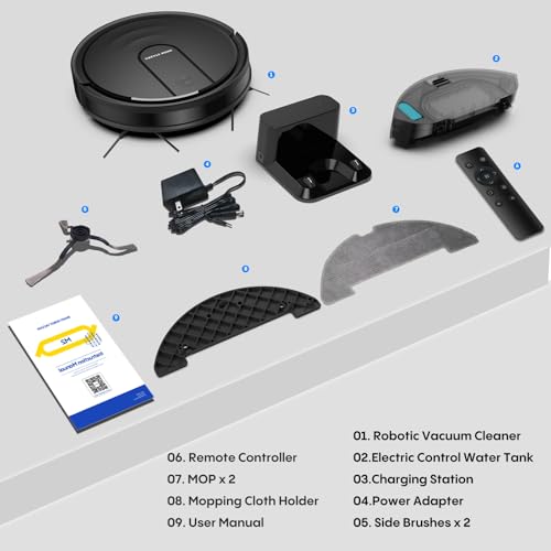 Quiet 4-in-1 robot vacuum and mop with 5000Pa suction. Self-charging, Wi-Fi/Voice/App control. Perfect for pets, hard floors & carpets. Schedule cleaning easily.