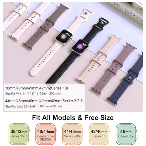 Experience ultimate comfort and style with the RQQ 6 Pack Liquid Silicone Sport Bands designed for Apple Watch. These premium bands are compatible with a wide range of Apple Watch sizes (38mm-49mm) and all series, including the latest Ultra 11, 10, 9, 8, 7, SE. Crafted from high-quality liquid silicone, they offer a soft, durable, and waterproof wristband ideal for workouts, daily wear, and any activity. The breathable design ensures all-day comfort for both men and women. Easily swap colors to match your outfit or mood. Elevate your iWatch experience with these versatile and stylish replacement bands.