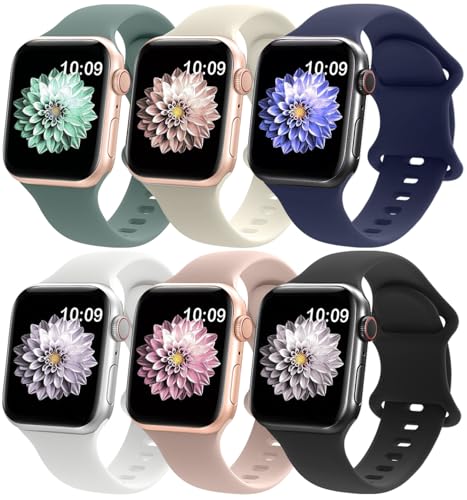 Upgrade your Apple Watch with RQQ 6-pack liquid silicone sport bands. Waterproof, soft, and compatible with all iWatch Series. Perfect for men & women.