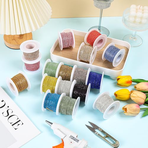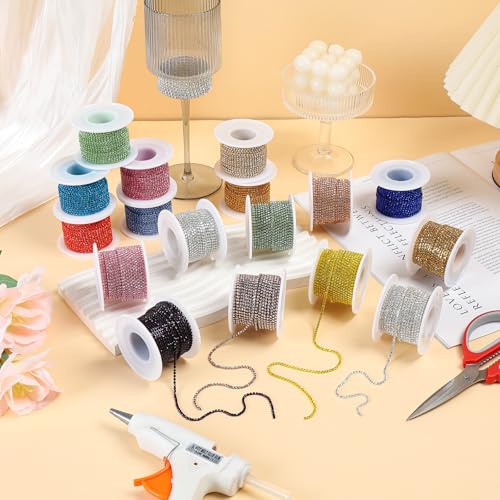 Add dazzling sparkle to your creations with this Rytenz 10-yard, 2MM rhinestone chain trim. Featuring brilliant red-orange crystals in a close-set chain, this trim is perfect for a myriad of DIY projects. Easily enhance sewing crafts, personalize clothing and shoes, create custom jewelry, or add a touch of glamour to various decorations. Its continuous length and versatile design make it an essential for crafters and designers looking to elevate their projects.