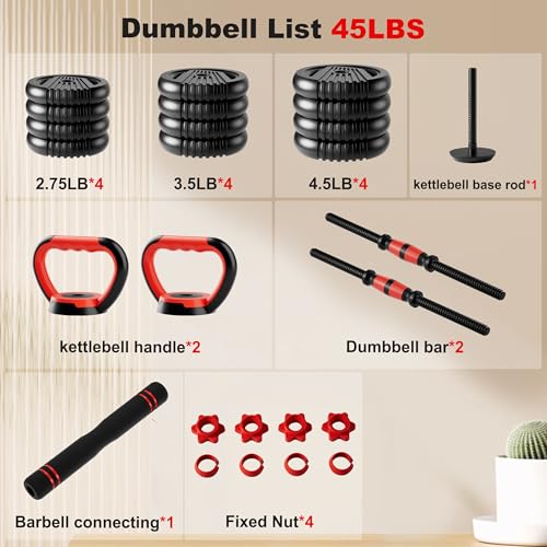 Versatile SCEPKN 4-in-1 adjustable dumbbell set (10-90lbs). Converts to barbell, kettlebell, push-up stand. Perfect for home gym, men & women.