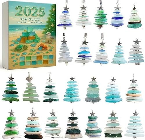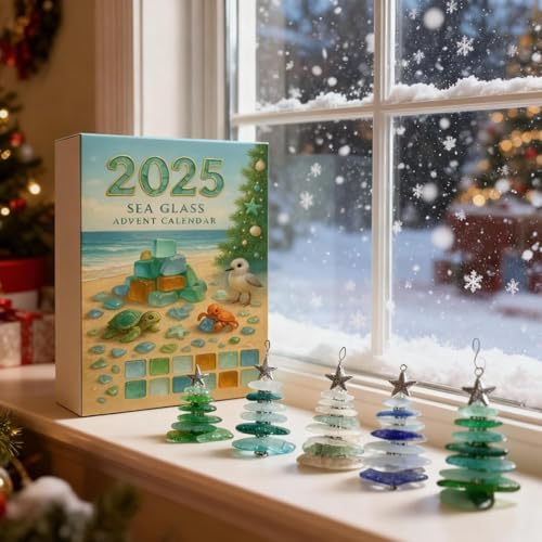 Experience a unique coastal Christmas with the 2025 Sea Glass Christmas Tree Advent Calendar. This handcrafted 7-inch mini tree is beautifully adorned with colorful ocean glass, making it a stunning festive decoration. Each of the 24 tiny doors holds a miniature natural ocean-themed gift, providing a delightful surprise daily. Perfect for those who love the sea and unique holiday decor, it blends the charm of the ocean with the spirit of Christmas, creating a truly special countdown.