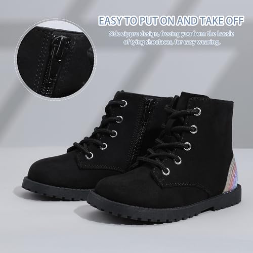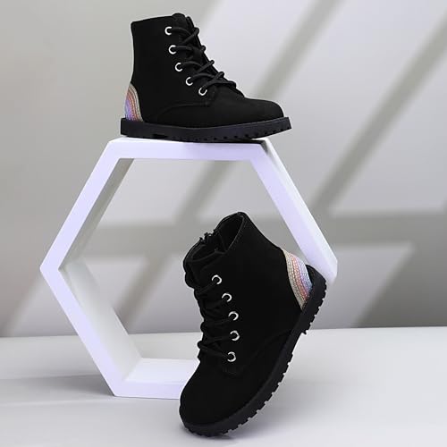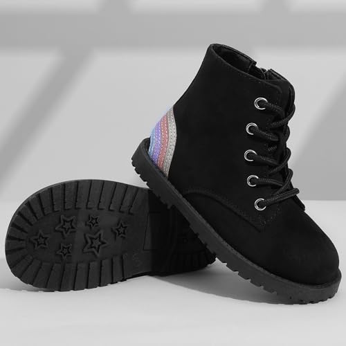 Add a splash of color to her wardrobe with shoeslocker Girls’ Rainbow Fashion Ankle Boots. These eye-catching black booties boast a playful rainbow accent on the suede upper, making them a trendy choice for any young fashionista. The practical side zipper ensures easy on and off, while the comfortable design is perfect for everyday wear, school, or parties. Let her express her unique style with these delightful and durable fashion boots.