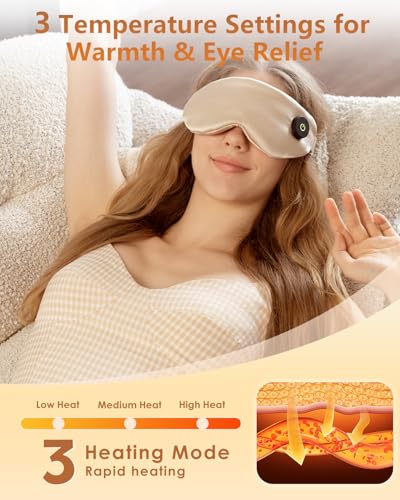 100% Mulberry silk heated eye mask for dry eyes & stye relief. 3 heat levels, auto-off, rechargeable, washable. Graphene wireless for travel.
