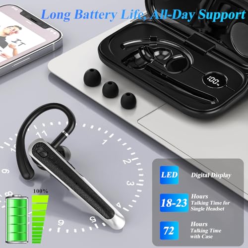 Hands-free Bluetooth earpiece with LED charging case and dual-mic ENC noise canceling. Ideal for computer, cell phones, home, and office use.