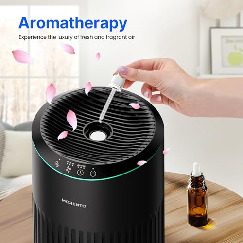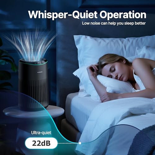This 2-pack of small air purifiers in sleek black is perfect for bedrooms and smaller home spaces, effectively combating smoke, pet dander, and unwanted odors. Designed for ultimate comfort, each unit features an ultra-quiet 23dB Sleep Mode, ensuring undisturbed rest. Enhance your environment with the soothing blue ambient light and personalize your space using the integrated fragrance sponge to diffuse your favorite scents. These compact yet powerful purifiers provide cleaner, fresher air and a pleasant atmosphere where you need it most.