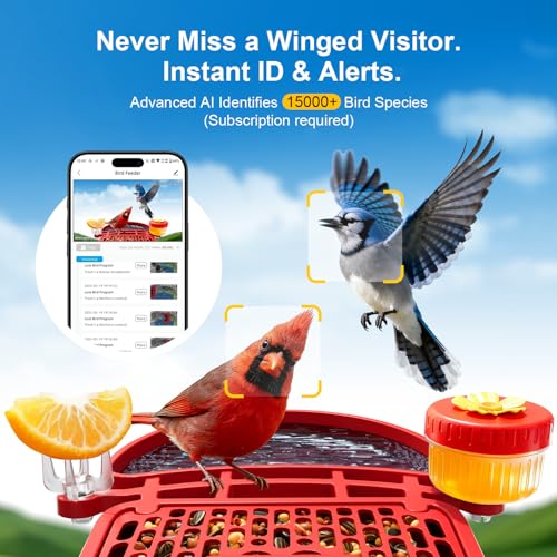 The built-in AI analyzes bird features from the camera feed and matches them with a database to identify species, sending you notifications.