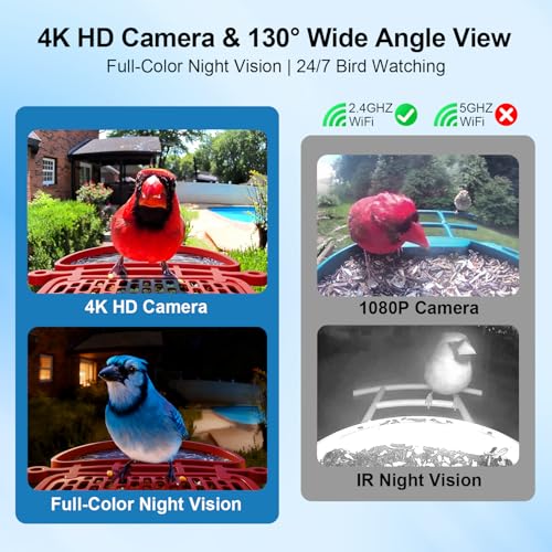 - 4K HD Camera & AI: Capture ultra-clear bird videos and identify species automatically.