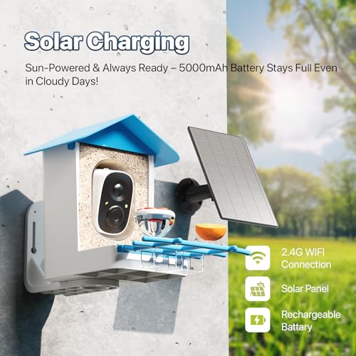 Experience the wonder of nature from your backyard with the juzjuly Smart Bird Feeder. This innovative device combines a high-definition 2K camera with AI technology to identify over 10,000 bird species. Powered by solar energy, it offers continuous operation without the need for constant charging. Receive instant arrival alerts on your phone and automatically record fascinating bird videos. Engage with birds using two-way audio. A perfect blend of technology and nature, it’s an ideal gift for birdwatchers, pet owners, and anyone who loves wildlife. Easily set up outdoors to bring the beauty of birds closer to home.