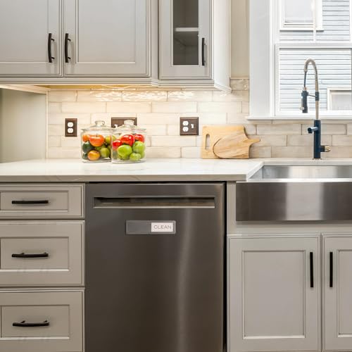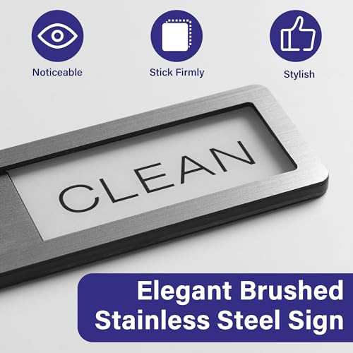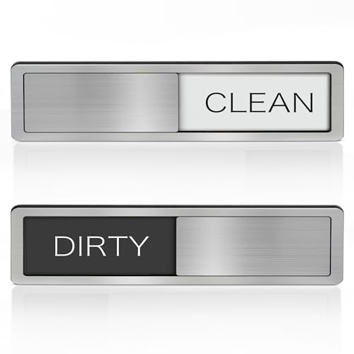 Easy-to-use stainless steel magnetic slider sign for dishwasher. Clearly indicates “Clean” or “Dirty” dishes, a practical kitchen gadget.