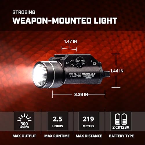 The Streamlight TLR-1s is a high-performance, rail-mounted tactical flashlight designed for weapon integration. Delivering 300 lumens of intense LED light, it features a strong beam for target identification and a user-activated strobe function for disorientation. Constructed from durable anodized aluminum with impact-resistant glass, it’s built to withstand recoil and harsh conditions. The included rail locating keys ensure a secure fit on various firearm rails, making it an essential accessory for law enforcement, military, and responsible gun owners.