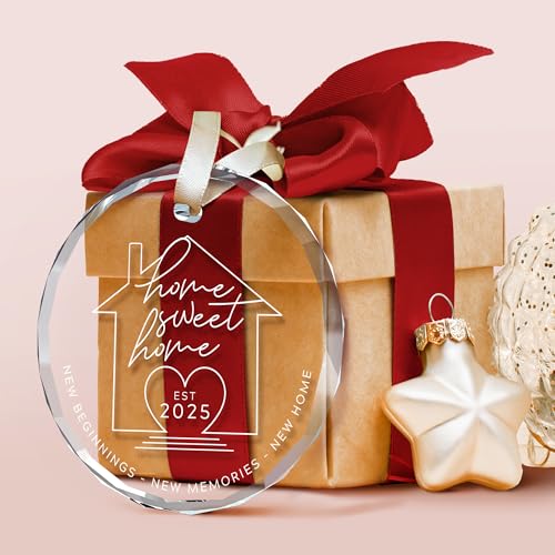 Commemorate the joy of a new residence with the SUCHAGIFT 2025 New Home Glass Ornament. This elegant glass ornament is an ideal housewarming gift for couples or anyone celebrating their first house. Its exquisite design serves as a beautiful reminder of this significant milestone and can be proudly displayed on a Christmas tree or as year-round home decor. Crafted from durable glass, it’s a timeless keepsake designed to be cherished for years, making it a thoughtful present for new homeowners and a wonderful way to mark their special journey. Perfect for creating lasting memories.