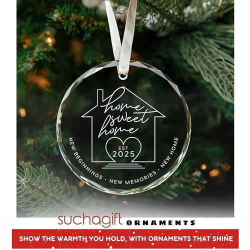 Celebrate new beginnings with the SUCHAGIFT 2025 New Home Glass Ornament. A perfect housewarming gift for couples and new homeowners to cherish memories.