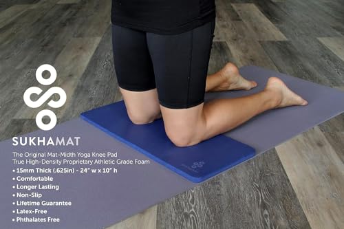 Achieve a pain-free practice with SukhaMat’s new 15mm (5/8″) thick yoga knee pad. Cushions pressure points, complements any full-size mat.