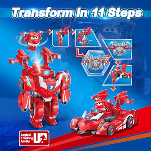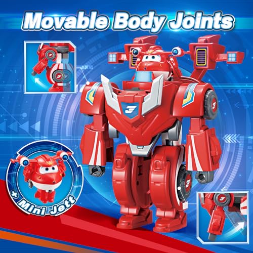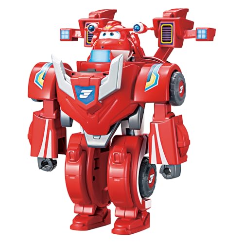 2-in-1 Super Wings Jett transformable toy: 7″ robot & 2″ mini suit converts to racing car. Action figure for boys & girls 3+. Perfect preschool gift.