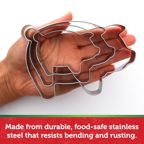 Create adorable pig-shaped treats with this 3-piece stainless steel cookie cutter set. Perfect for cookies, sandwiches, and crafts. Dishwasher safe.