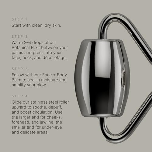TALOVA 304-grade stainless steel facial roller. Reduces puffiness, improves wrinkles for eyes, jawline, neck. Anti-aging, lifting, and lymphatic drainage massage tool.