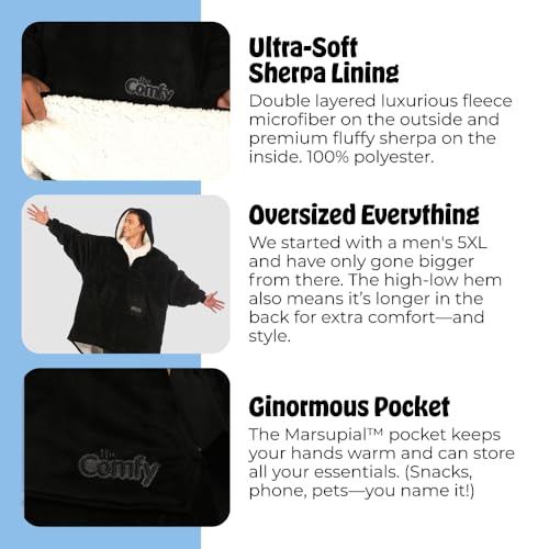 Snuggle up in THE COMFY Original Quarter-Zip, the renowned wearable blanket seen on Shark Tank. Crafted with luxurious sherpa-lined microfiber fleece, its oversized design ensures maximum comfort and warmth from head to toe. Featuring a convenient quarter-zip, a spacious hood, and a large front pocket for essentials, it’s perfect for lounging at home, outdoor events, or as a thoughtful gift. Enjoy unparalleled coziness all year round.