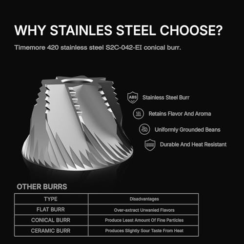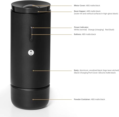 TIMEMORE Portable Electric Burr Grinder. Metal body, 30 precise settings for espresso to French Press. Low noise, auto stop, clog protection. Home & outdoor.