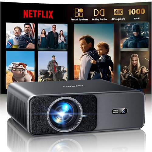 The TOPTRO A1 Smart 4K Projector delivers an unparalleled home theater experience. Boasting 1000 ANSI lumens, WiFi 6, and 2-way Bluetooth, it offers seamless connectivity and brilliant 4K visuals. Enjoy cinematic sound with 20W Dolby Audio, bringing your movies and games to life. AI Auto Focus and Auto Keystone ensure a perfectly clear and aligned picture, while built-in apps like Netflix provide endless entertainment. Its portable design makes it ideal for both indoor movie nights and outdoor cinematic adventures.